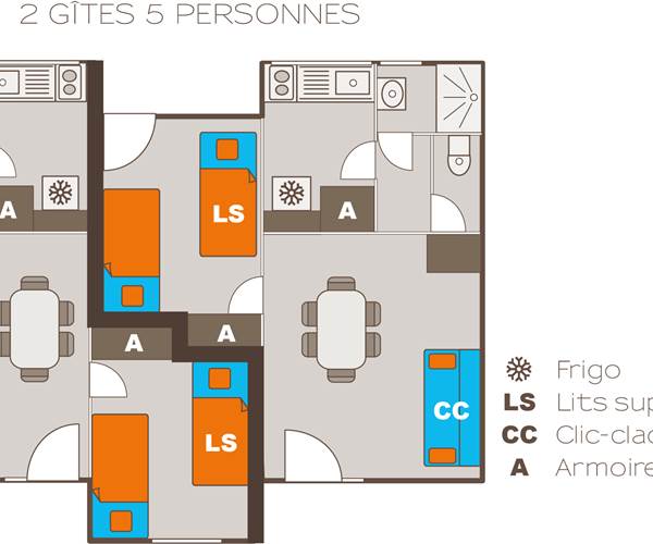 Gîte composé d'un séjour avec clic-clac 2 personnes, une salle d'eau, un WC, une cuisine équipée (pl...
